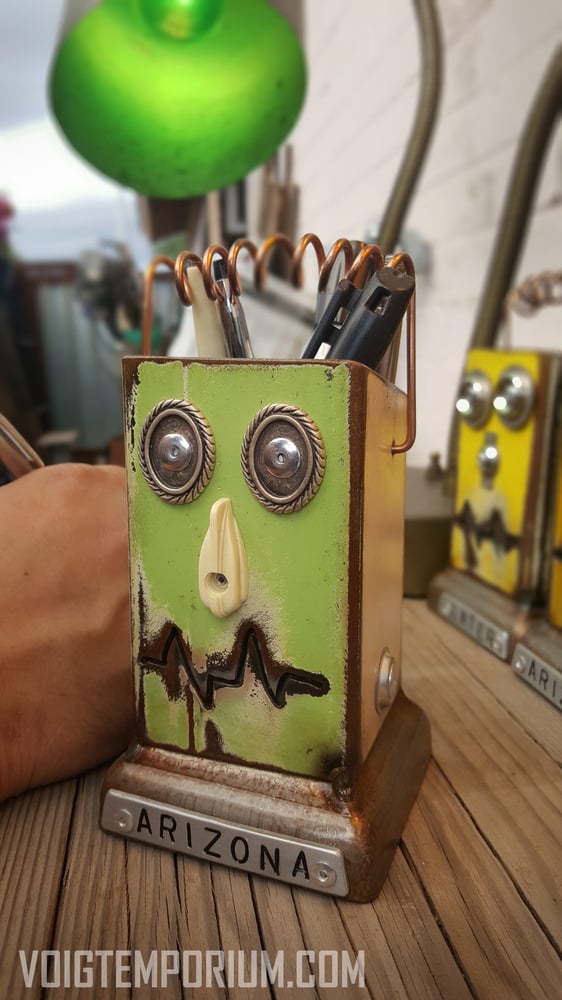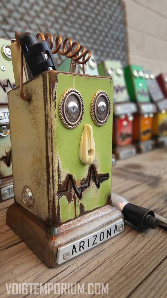 Bring your Nerd out with this Arizona Robot desk organizer. This pencil pusher will accommodate a fist full of pens and whatnot's or some seasonal silk flowers for your workspace mood.